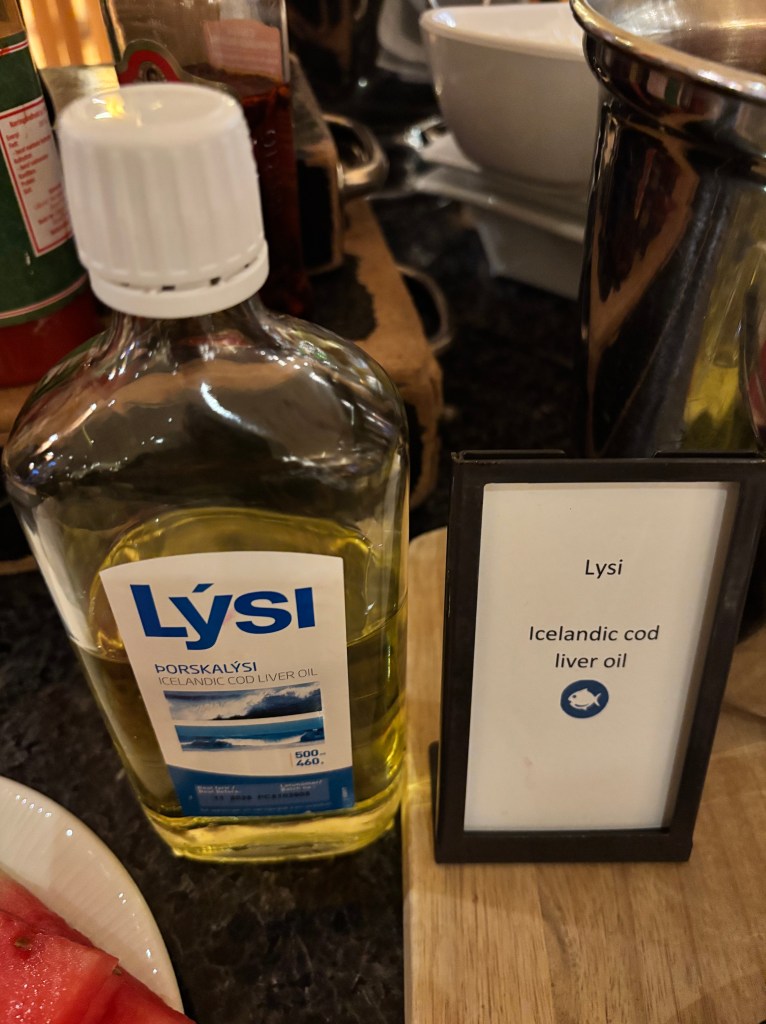 At every breakfast I have been served, there is a bottle of caster oil. I thought, ok, I’ll go for it. I’ve had a shot every morning I’ve been in Iceland.