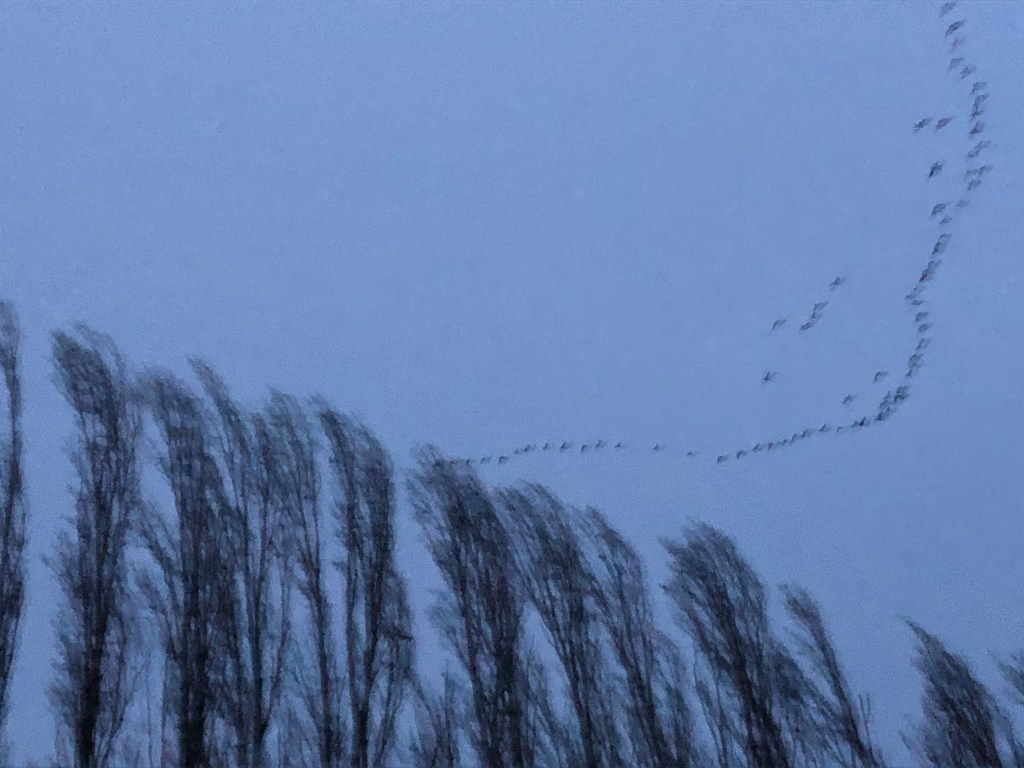 As I was walking around the abandonded campground, I heard birds calling. I looked up and this flock of geese flew over.