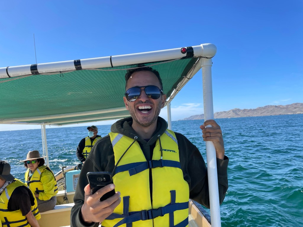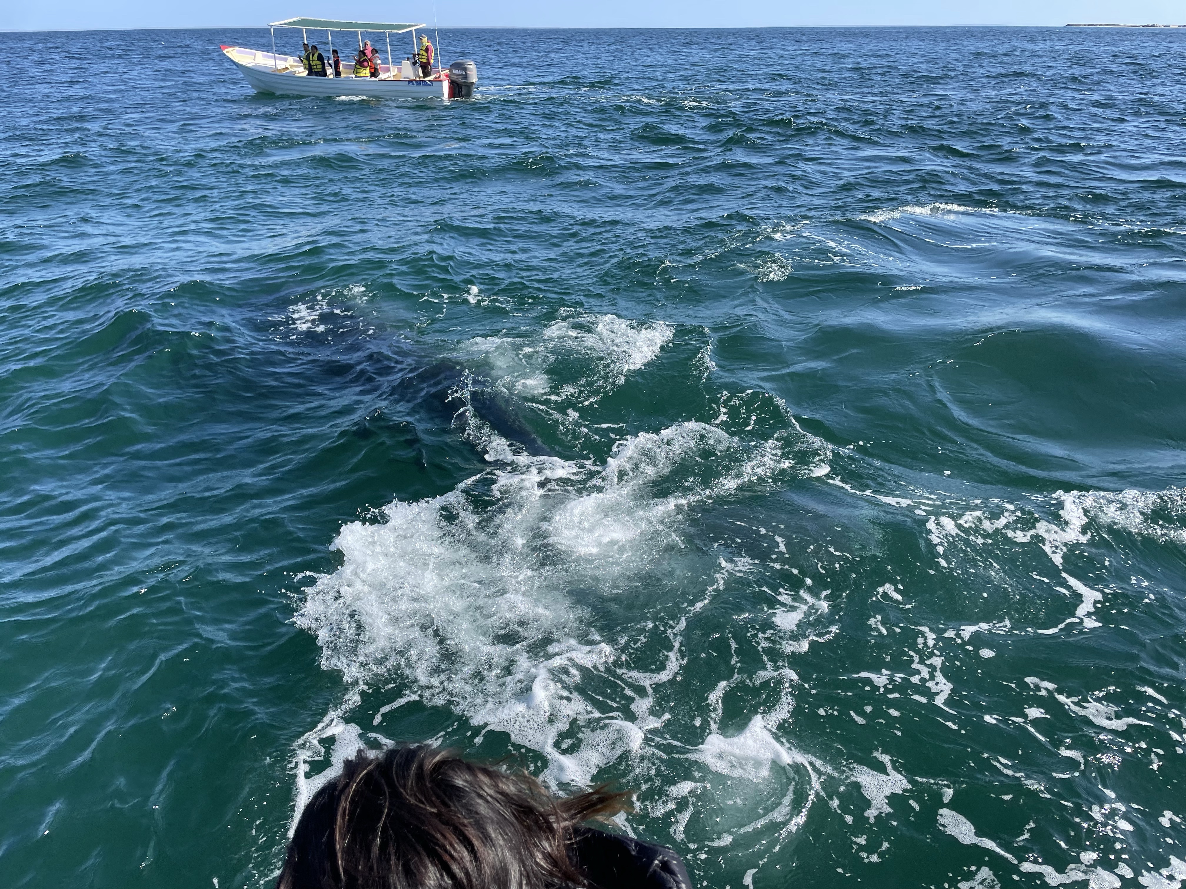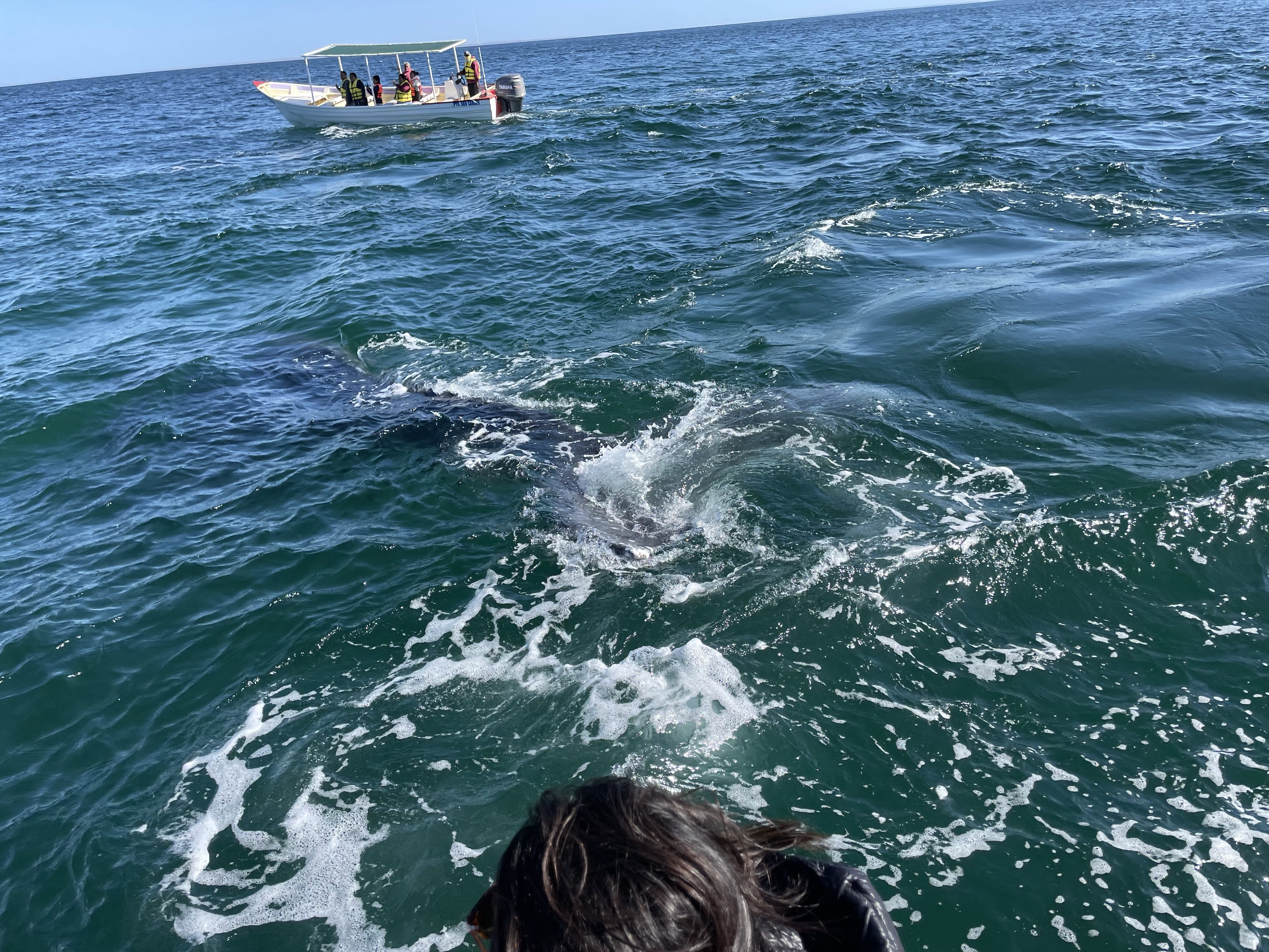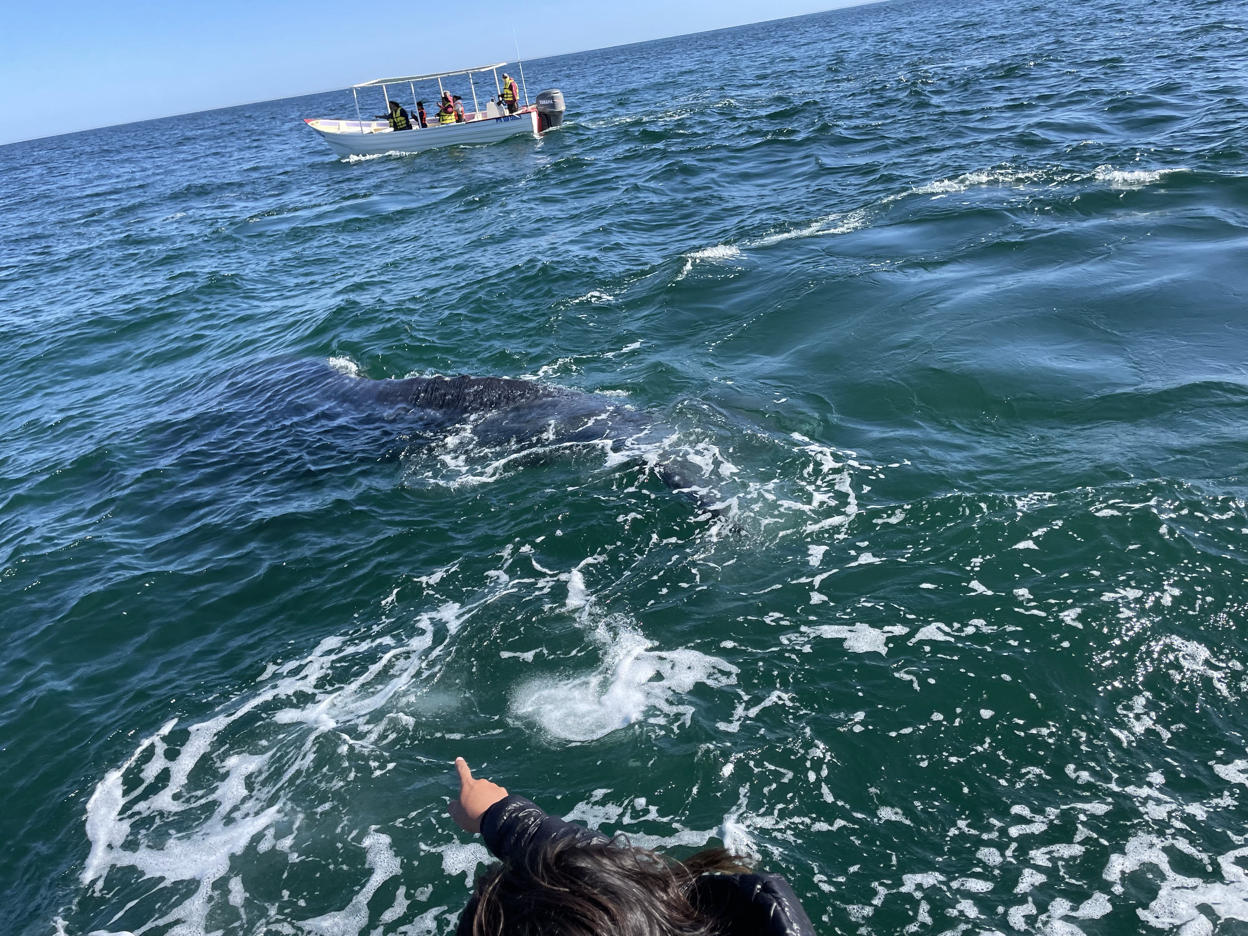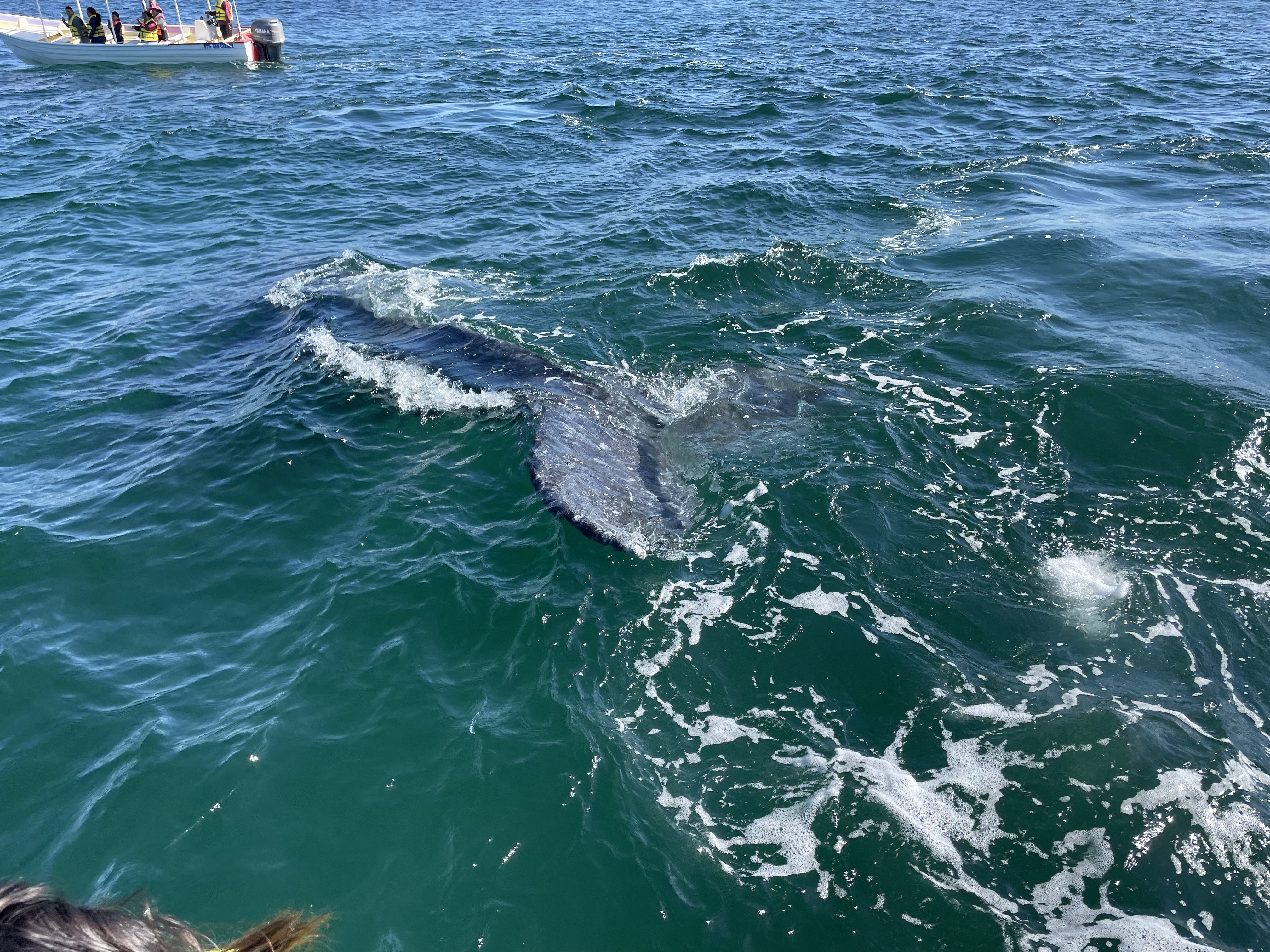 Soon, we were in the boat, cruising out into the bay. Before we knew it, we were watching grey whales breach, roll, jump and play. In every direction, there were whales. It was thrilling!