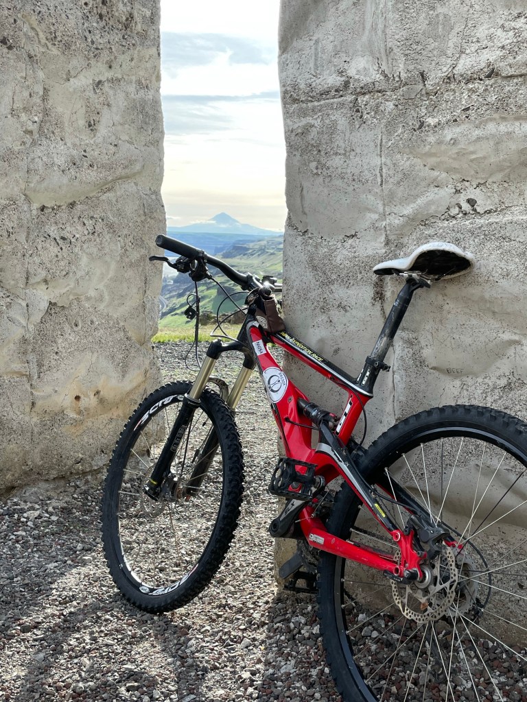 I wanted to ride my bike after driving for most of the day, so just took off from the park. Soon, I saw Stonehenge up on the hill. LOL. Scott and I had explored there many years ago. I rode up (and up, and up) from the river to the structure.