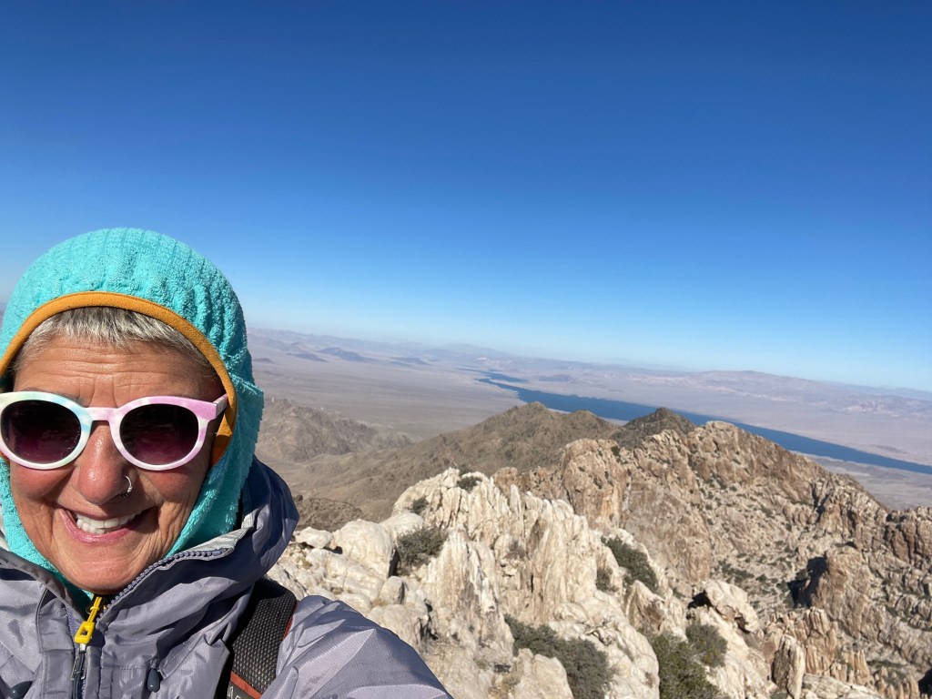 The trail was rough and steep in a few places, and toward the top, eased off and was a joy. The summit was a bit windy, so I bundled up.