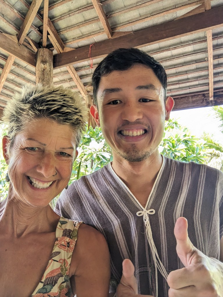 Then I wave with both hands. Now he realizes it’s me. He is delightfully surprised and cannot believe I am here. He had no idea.