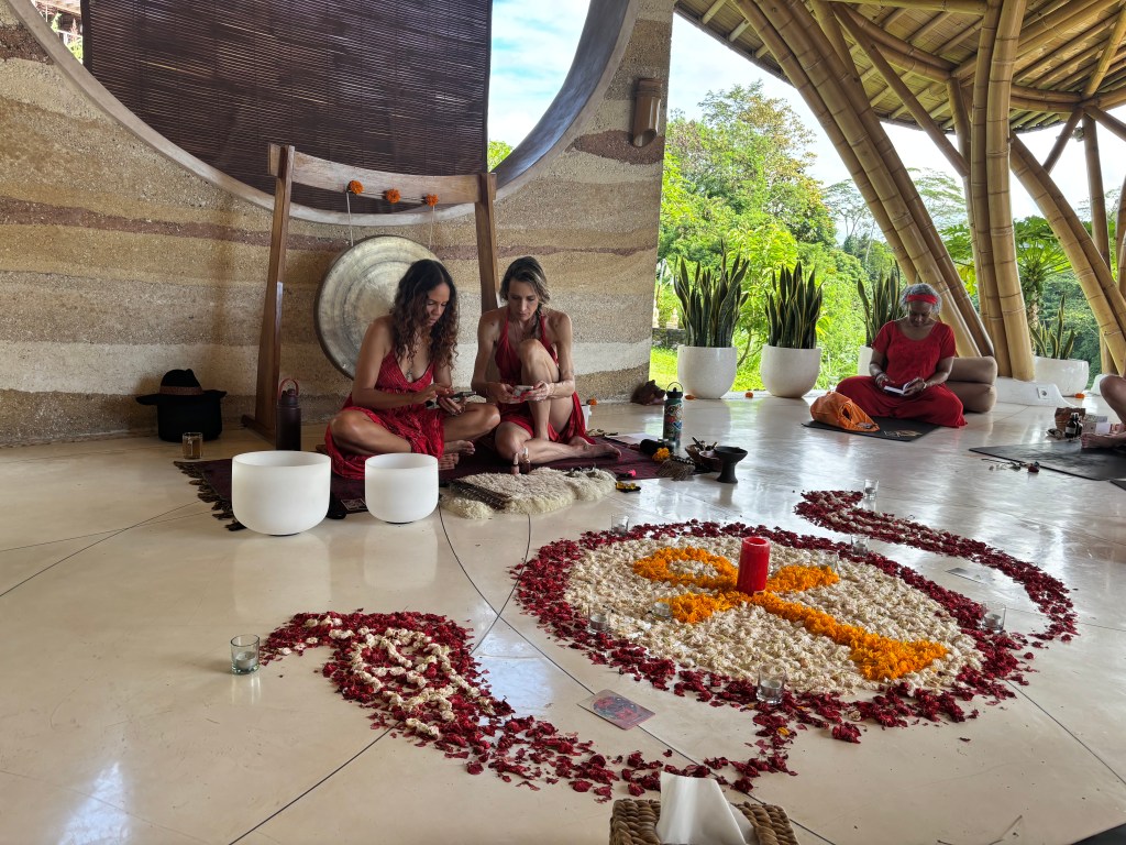 Ages rage from 21 – 65 – I’m the oldest. Profession’s include: a singer, a massage therapist, a professional chef, a supplement spokesperson, an executive coach, a lawyer, a motorcycle builder (she’s 21), two photographers, and a body worker. The group has really come together, as expected with the personal, deep experiences we are sharing.